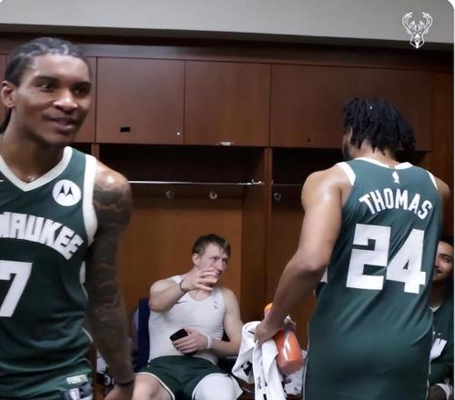 賽后雄鹿全隊的工作人員、更衣室的球員們都主動與新援托馬斯擊掌致意,就連雄鹿核心揚尼斯-阿德托昆博都上前與托馬斯擁抱,這是托馬斯來到密爾沃基的第二場比賽,他第二場比賽就利用個人的進(jìn)攻才能融入了球隊。