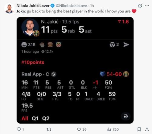 北京時間2月12日,掘金122-166險勝灰熊。這場比賽掘金一度領先魚腩灰熊15分,可隨著約基奇的各種失誤送反擊灰熊一路追分,末節灰熊兩次縮小到最差1分,灰熊就差一口氣就完成反超,好在成也約基奇,敗也約基奇,決勝時刻約基奇1攻1防鎖定勝局。
