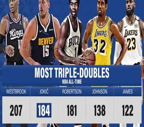 此役后約基奇已經完成184次三雙,他距離威少207次只差24次,而且威少已經37歲夕陽西下大概率本賽季打完就要退役,約基奇大概率1-2年后就可以超過威少的三雙次數成為新的歷史第一。