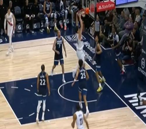 接下來的一個進攻回合,楊瀚森的隊友持球突破上籃,但是沒有命中,此時楊瀚森跟進完成了補扣,還是很提振士氣的。全場比賽,楊瀚森就打了4分47秒,1投1中拿到了2分1籃板1搶斷的數(shù)據(jù),開拓者隊以109比133慘敗給了森林狼隊,目前以26勝29負排名西部第10,還是有季后賽的機會。