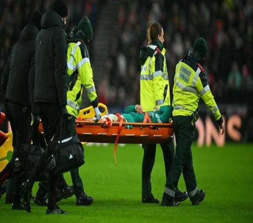 比賽中,遠藤航試圖解圍左側傳中時,左腳被草皮絆倒,導致左踝關節(jié)嚴重扭傷,之后他被擔架抬下球場,下場時,遠藤航捂著面部,看上去受傷非常嚴重。