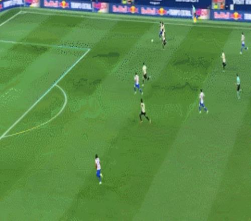 上半場(chǎng)補(bǔ)時(shí)第2分鐘,盧克曼得球橫傳,阿爾瓦雷斯跟進(jìn)爆射破門,比分4-0,馬競(jìng)40分鐘連入4球!
