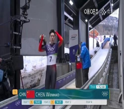 米蘭冬奧會(huì)男子鋼架雪車第2組:中國(guó)選手陳文浩1分52秒68,排第4