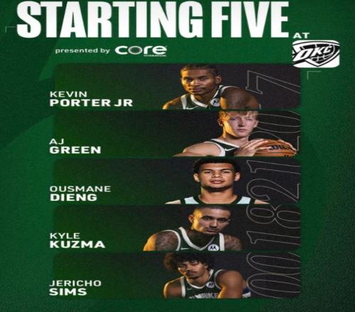 首發(fā)陣容方面,雄鹿隊這邊,字母哥、特納、普林斯(頸部)、羅林斯(腳傷)均缺陣,主帥里弗斯因私事缺席,哈姆頂替今日主帥,排出的首發(fā)五人組為:凱文-波特、希姆斯、迪昂、AJ-格林、凱爾-庫茲馬;雷霆這邊,亞歷山大、杰威、哈爾滕施泰因三大主力缺陣,首發(fā)陣容則為:卡森-華萊士、以賽亞-喬、呂岡茨-多爾特、切特-霍姆格倫、肯里奇-威廉姆斯。