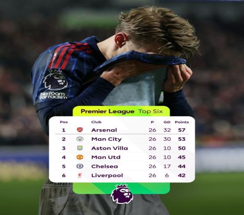 體育播報02月13日宣 英超第26輪戰罷,阿森納本輪1-1戰平布倫特福德,積分優勢減少到4分。