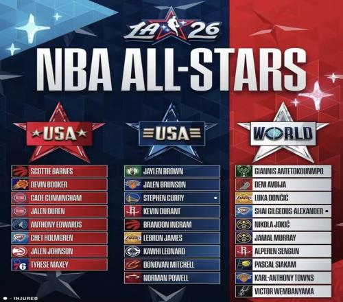 世界隊則是眾星云集,MVP球員字母哥、SGA、約基奇領銜,東契奇、文班亞馬以及楊瀚森在開拓者隊的“老大哥”阿夫迪亞等名列其中。可以說在總體實力方面,世界隊顯然擁有不小的優勢,而在NBA全明星,他們也將充當“迷人又可惡”的“反派角色”......