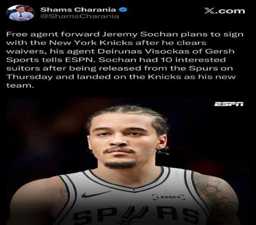 索漢和托馬斯一樣,進入買斷市場就立刻有新東家接手,已經決定加盟身處國際大城市紐約的尼克斯。