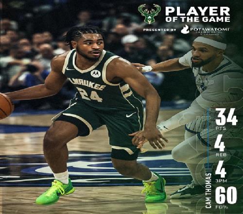 卡梅倫-托馬斯,年僅24歲,21屆首輪第27號秀,1米91雙能衛,曾在籃網連續兩個賽季場均得分20+,然而本賽季交易截止日后就被裁掉,緊接著把天賦帶到了雄鹿。