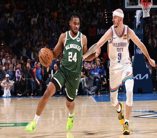 本場比賽中,剛剛在交易截止日前被布魯克林籃網裁掉并且加盟雄鹿的替補后場新援卡姆-托馬斯(Cam Thomas)的表現還是值得肯定的。托馬斯全場出場20分鐘,投籃13中5,三分線外6中1,罰球1中1,得到了12分1籃板2助攻的數據,還有1次失誤和1次犯規,正負值為+15。托馬斯在進攻端雖然外線投籃手感不佳,但是他還是通過中近距離投籃和突破完成了不少得分,為球隊的第二陣容提供了不少的幫助。托馬斯在其他方面的表現也算是中規中矩,在防守端也沒有出現什么太大的問題,也沒有過多的粘球和浪費機會。總體來看,托馬斯的出場時間并不多,但是他還是起到了第二陣容得分手的作用并且為球隊提供了不小的支持。托馬斯在場上時球隊的局面也是不錯的,這也能夠體現在他較高的正負值上。