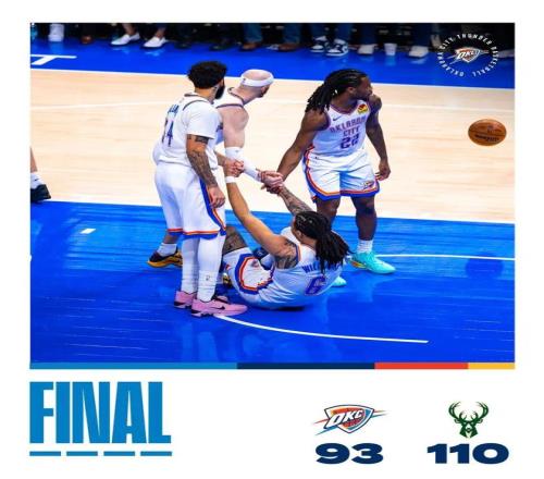 全明星前的最后一個比賽日,雷霆主場93-110不敵雄鹿。