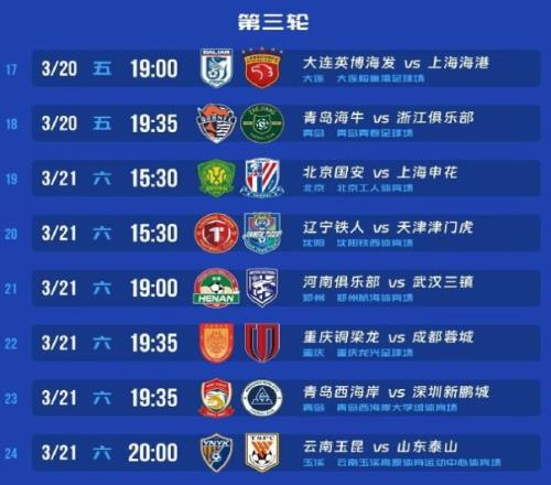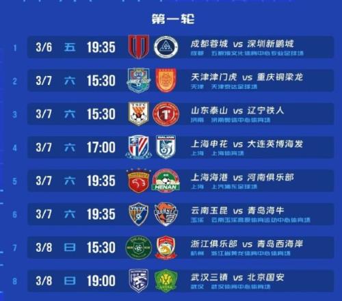 3月6日,中超揭幕戰將在成都進行,成都蓉城將主場對陣深圳新鵬城,首次為成都蓉城出場的拜合拉木就將對陣老東家。遼寧鐵人、重慶銅梁龍分別客場對陣山東泰山、天津津門虎,這將是兩支球隊的中超處子秀。