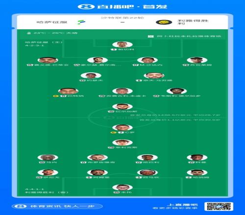 利雅得勝利首發:24-本托、2-哈納姆、3-西馬坎、26-伊尼戈·馬丁內斯、5-阿卜杜勒拉·阿姆里、17-哈巴利、11-布羅佐維奇、21-科曼、10-馬內、79-菲利克斯、7-C羅
