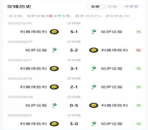利雅得勝利聯賽16勝1平3負積49分暫位沙特聯第3,各項賽事已獲七連勝;哈薩征服聯賽6勝6平8負積24分暫位沙特聯第10,目前已遭遇聯賽六輪不勝。利雅得勝利近6次對陣哈薩征服取得5場勝利。