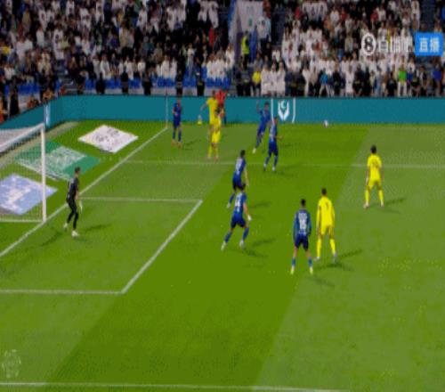 第1分鐘,C羅跑位到后點(diǎn)凌空抽射踢飛。↓