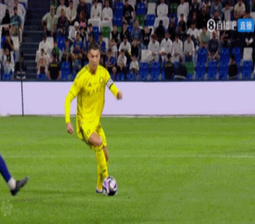 第14分鐘,C羅秀一下腳后跟傳球。↓