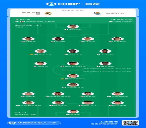體育播報2月15日宣 西甲第24輪,皇家馬德里主場迎戰皇家社會,賽前首發名單公布。