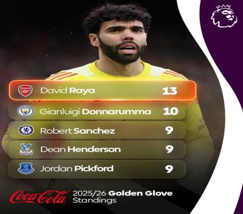 體育播報2月14日宣 英超已經進入后半程沖刺階段,金手套獎競爭也是看點之一,英超官推曬出了本賽季門將零封場次榜。具體如下: