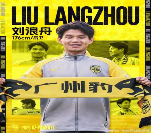官方:23歲邊衛劉浪舟加盟廣州豹,曾效力廣州和青島西海岸等隊