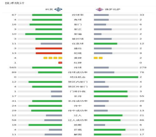 第54分鐘,曼德拉戈拉禁區內被踢倒,小基恩主罰點球命中,佛羅倫薩2-0領先