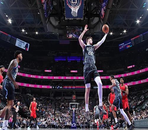 本場比賽中,爵士雖然輸掉了比賽,但是球隊的先發中鋒凱爾-菲利波夫斯基(Kyle Filipowski)的表現還是相當不錯的。菲利波夫斯基全場出場29分33秒,投籃9中6,三分線外4中1,罰球4中2,得到了15分9籃板3助攻6搶斷的準兩雙數據,還有2次失誤和4次犯規,正負值為-17。菲利波夫斯基在進攻端還是展現出了相當全面的得分能力,他能夠在對手內線完成不少得分,他也具備一定的投射能力,是一名能力非常全面的得分手。菲利波夫斯基還具備一定的傳球能力和策應能力,他在進攻端的功能其實非常全面。菲利波夫斯基在防守端的表現更是非常突出,他也是不斷送出各種搶斷,在防守端同樣起到了關鍵的作用。只是他并沒有得到更多的球權和出手次數,他也沒有辦法在進攻端發揮出更大的作用,這也是一件有些遺憾的事情。