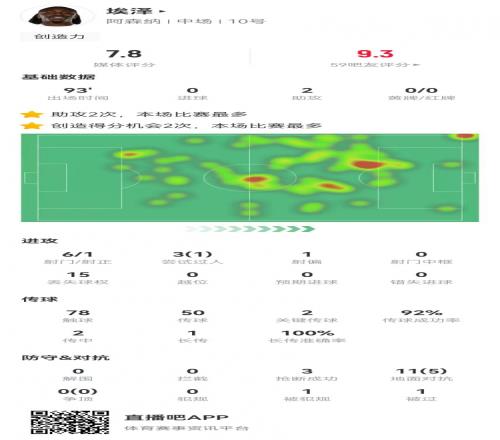 體育播報2月16日宣 阿森納在本輪足總杯對陣維岡競技,埃澤本場數據如下: