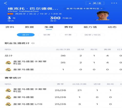 體育播報02月15日宣 據西媒《阿斯報》報道,多家球隊都在關注皇馬19歲后衛巴爾德佩尼亞斯,球員目前合同解約金條款在5000萬歐元以上。