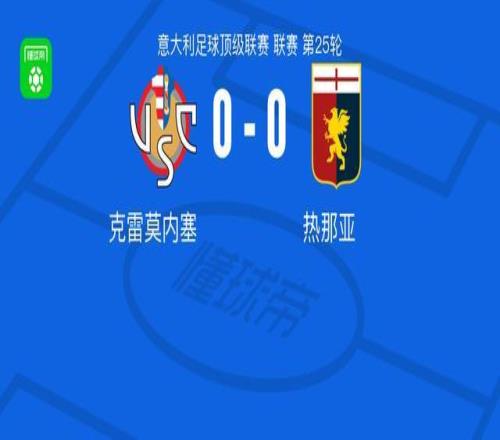 北京時間2月15日意大利足球甲級聯(lián)賽第25輪,克雷莫內塞主場迎來熱那亞的挑戰(zhàn)。全場比賽結束,兩隊均未攻破對方球門,最終克雷莫內塞0-0戰(zhàn)平熱那亞。