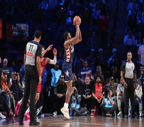 世界隊(duì)還有一個(gè)穆雷投籃6中0,輸球之后的文班非常郁悶。賽前他說(shuō):“不管別人怎么樣,我都會(huì)全力以赴。”他也說(shuō)到做到,把今年的全明星帶到了一個(gè)新的高度。