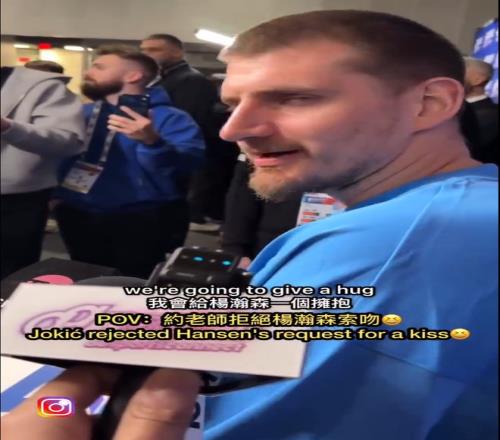 在今天的NBA全明星周末正賽結束之后,一位中國記者提問了約基奇,“約基奇先生,請問一下楊瀚森,中國球員楊瀚森想要親吻你?”