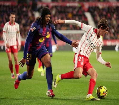 第36分鐘赫羅納創造出了開場后,最有威脅的一腳打門,隊友左路下底傳中,門前包抄的瓦納特沒有碰到皮球,錯失破門良機,半場比賽結束之前,巴薩也連續浪費機會,先是拉菲尼亞第43分鐘的打門擊中立柱,隨后亞馬爾的點球同樣被立柱拒絕,兩支球隊只能帶著0-0的比分,回到了中場更衣室。