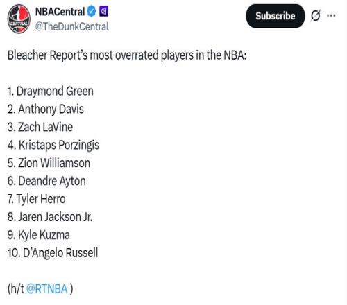 美媒評現役最被高估球員TOP10!前五勇士獨占兩席濃眉哥高居第二