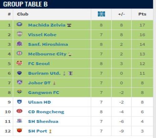 以2比3的比分負于町田澤維亞之后,成都蓉城8輪之后以6分排名東亞區第10位,無緣晉級淘汰賽。加上上一輪就被淘汰出局的上海申花、上海海港,三支中超球隊攜手出局,而且分別排名東亞區倒數后三位。