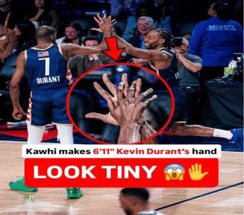 科懷-倫納德在全明星正賽是大放異彩,尤其是他與凱文-杜蘭特?fù)粽频囊粋€(gè)瞬間,他的手掌足足比杜蘭特大了一圈,根據(jù)NBA官方的數(shù)據(jù),倫納德手掌寬度28.5cm-29cm,手掌長(zhǎng)度是24.75cm-24.8cm,杜蘭特一直以來都是聯(lián)盟知名的小手掌。