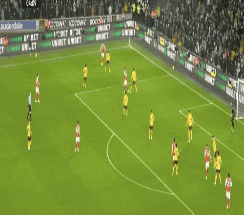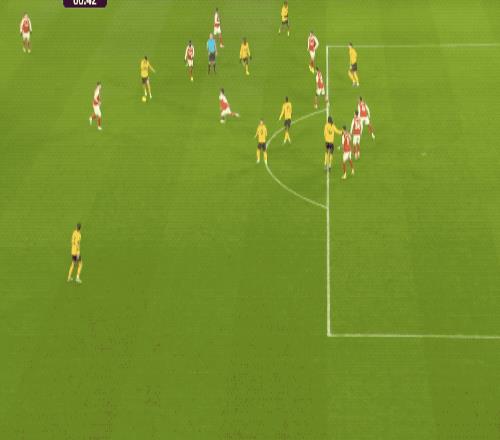 整個上半場,阿森納占盡優勢,完成8次射門,狼隊只有2次射門,相當被動。