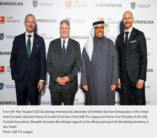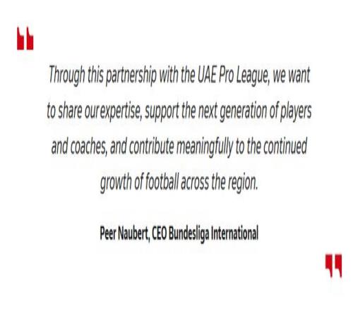 其一,官方背書的戰略級聯動,讓青訓擁有資源支撐與職業銜接。此次德甲與阿聯酋的合作,并非德甲單方面的民間輸出,也非阿聯酋的零散引進,而是兩國職業聯賽的官方簽約,且有德國總理與阿聯酋總統的共同見證,阿聯酋職業聯賽、德甲國際、當地合作伙伴環球體育目標公司三方協同,青訓學院的培養目標明確指向為阿聯酋職業聯賽輸送本土人才,球員的成長路徑直接與職業聯賽接軌,從青訓到職業賽場形成了清晰的上升通道。同時,德甲還為阿聯酋配套了教練員培訓、賽事運營經驗共享等內容,讓青訓不只是“練球員”,更是打造本土化的足球專業人才體系。