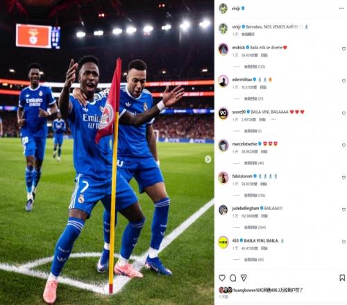 體育播報02月19日宣 在皇馬1-0擊敗本菲卡的比賽中,維尼修斯遭到普雷斯蒂安尼的種族歧視,在維尼修斯Ins曬照中,有關本場比賽的社媒評論高達約22萬條,創造了近期他社媒評論數的新高。