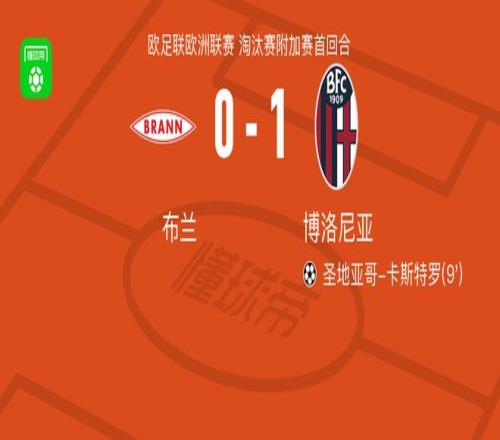 北京時間2月20日歐足聯歐洲聯賽 淘汰賽附加賽首回合,布蘭對陣博洛尼亞。博洛尼亞圣地亞哥-卡斯特羅破門。最終比分布蘭 0-1 博洛尼亞。