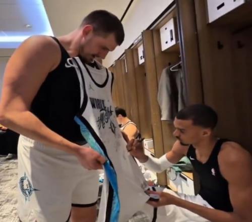 約基奇全明星周末唯一的亮點可能就是找文班亞馬簽名了,他讓文班亞馬在簽名后畫一個外星人的頭像。約基奇全明星劃水也引發了巨大的議論。