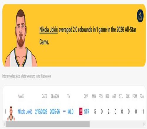 數據媒體StatMuse曬出了約基奇最近兩年全明星的數據,今年是5分鐘,1中0拿0分2籃板0助攻。