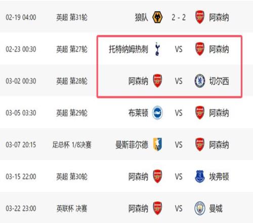 阿森納榜首要丟7天客戰(zhàn)熱刺+主場對切爾西,2場拿1分或被反超