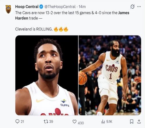 騎士隊(duì)最近的15場(chǎng)比賽贏下了其中的13場(chǎng),哈登到來(lái)后又是一波4連勝,克利夫蘭騎士隊(duì)真的一躍成為奪冠熱門(mén)之一,如果今夏還能以底薪簽下勒布朗-詹姆斯,下賽季的騎士或許將成為聯(lián)盟最強(qiáng)球隊(duì)。