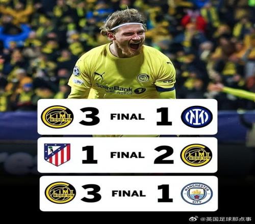 值得一提的是,這也只是博德閃耀在2026年的第三場正式比賽。準確地說,是他們進入新年后全部的三場比賽。對手分別是曼城、馬競、國米。結果是全勝。3-1國米、2-1馬競、3-1曼城,莫說小球會,哪怕是皇馬來,也很難保證拿出這樣成績的。
