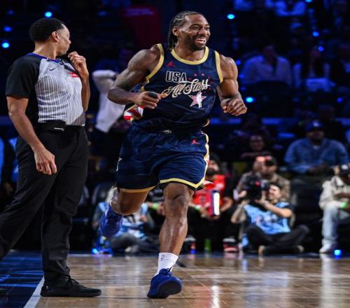 科懷-倫納德在全明星周末對陣世界隊一戰,12分鐘里13中11,三分7中6,拿到31分,他就在約基奇的眼前打出炸裂表現。關鍵是倫納德的競技狀態一直都很炸裂,本賽季的他打出生涯最高光的賽季。
