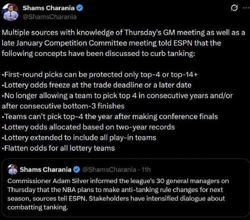 2月2日,根據Shams消息,NBA總裁肖華已正式通告聯盟30支球隊高管,NBA將在下賽季調整防擺爛規則!
