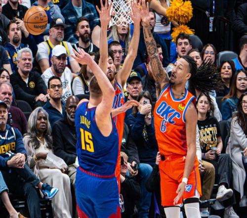 從4組數(shù)據(jù)說起,本賽季約基奇場均28.5分12.4籃板10.6助攻,兩項命中率58%+40%,高階效率值依舊夸張,但自從1月底打快船復(fù)出后,他仿佛換了個人。1月底和快船復(fù)出一戰(zhàn),25分鐘11中8,罰球17中13,掘金最后贏得并不光彩,而約基奇只用11次出手換來17次罰球,東契奇和亞歷山大都比不了!此后面對雷霆,那是遇到對手了,約基奇發(fā)揮欠佳,只有16分7籃板8助攻入賬,還有6次失誤。包括輸給活塞的24分,輸給尼克斯的30分(三分球13中1),贏公牛相對還好,之后打騎士,又是只有11次出手,換來12次罰球。