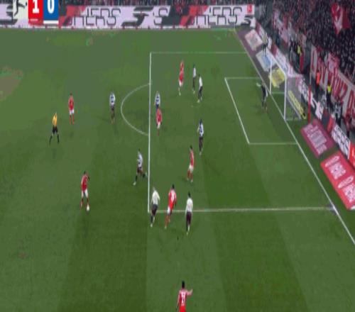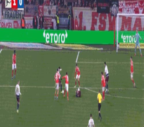 第45分鐘,達(dá)科斯塔傳中,阿米里凌空掃射破門,美因茨1-0