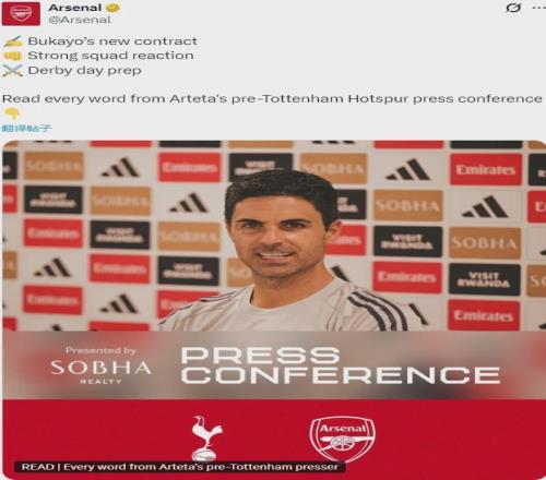 阿爾特塔出席了賽前新聞發(fā)布會,我們來看看阿森納主帥的發(fā)言。