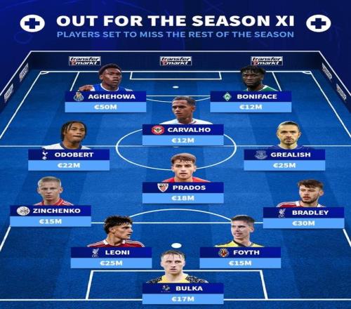 北京時(shí)間2月21日,德國轉(zhuǎn)會(huì)市場(chǎng)統(tǒng)計(jì)了本賽季賽季報(bào)銷的陣容,其中格拉利什、萊昂尼、津琴科、布拉德利、福伊特等人在列。
