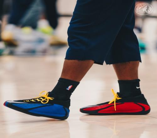今日愛德華茲上腳了昨日訓(xùn)練時(shí)曾上腳的鞋款——AE 2 堪薩斯大學(xué)PE。這個(gè)配色采用了陰陽紅藍(lán)配色,鞋后跟有堪薩斯大學(xué)的吉祥物Jayhawk(松鴉鷹)。