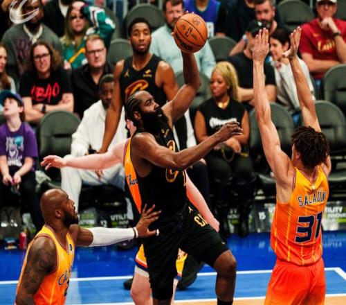 自從哈登來到騎士,場均18.4分5籃板8.6助攻1搶斷,數(shù)據(jù)很一般,但兩項(xiàng)命中率為49%+48%。首戰(zhàn)打國王,出場32分鐘,13中7拿到23分8助攻,球隊(duì)贏球,他在場正負(fù)值是-14,很尷尬,不過可以理解,畢竟前后一周的時(shí)間沒打球,他也需要慢慢找狀態(tài)。不過此后哈登的爆發(fā),反而不是得分體現(xiàn),因?yàn)槭讘?zhàn)國王23分已經(jīng)是他騎士生涯最高得分了。他融入的方式,就是四個(gè)字:“高效、配合。”所謂高效,哈登非常珍惜每一次出手機(jī)會(huì),特別是三分球,命中率非常高。而配合更容易理解,大家之前怎么打,我配合全隊(duì),鞏固提升。
